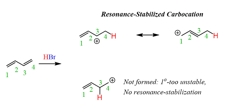 - Markovnikov’s rule still applies, which aligns with the formation of resonance-stabilized carbocations.