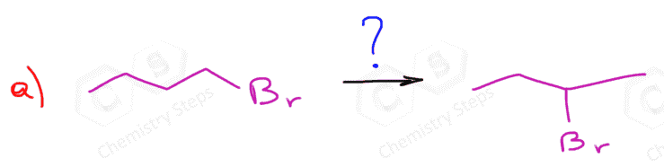 Identify the reagents you would use to change the position of the leaving group in each of the following alkenes: