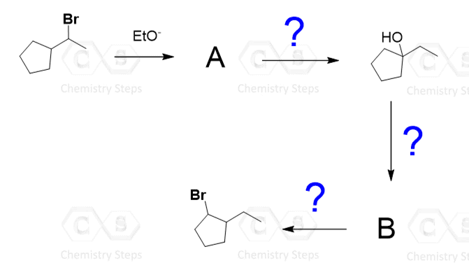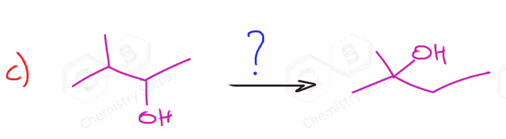 In the example, we have shown above, there is no possibility of converting the secondary carbocation to a tertiary carbocation. Let’s consider addition of water to alkene going through a transformation of a secondary carbocation to a tertiary one: