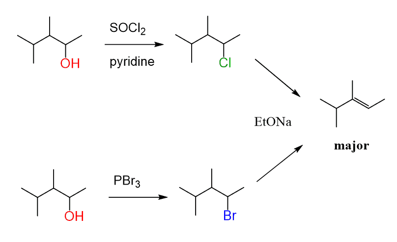 Now, what is the mechanism of this elimination? We don’t normally expect an alcohol to undergo an elimination reaction since the OH is a poor leaving group. It only happens through and E1 by using a strong acid or by converting the OH into a good leaving group such as a mesylate, tosylate or a simple halide.