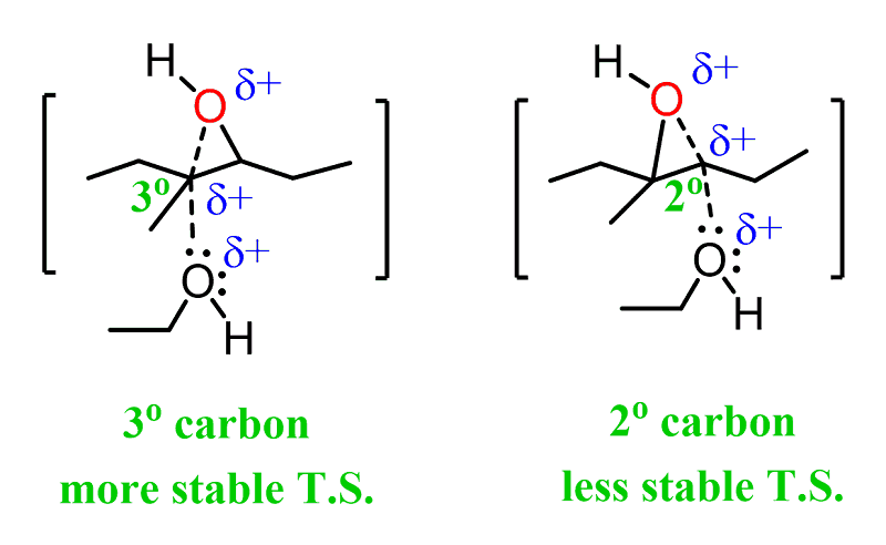 This is explained by the stability of the energy differences of the two possible transition state: