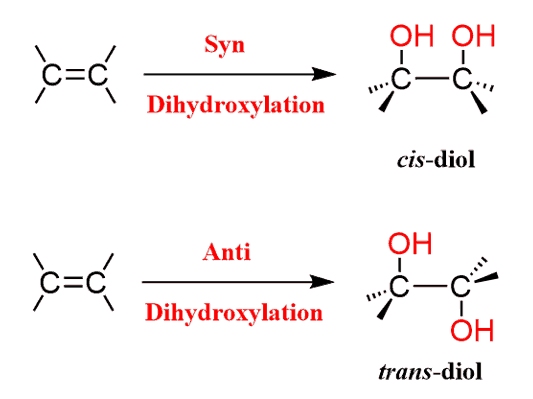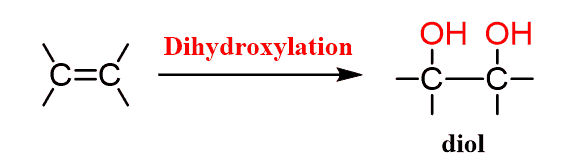 Dihydroxylation is the addition of two OH groups to an Alkene:
