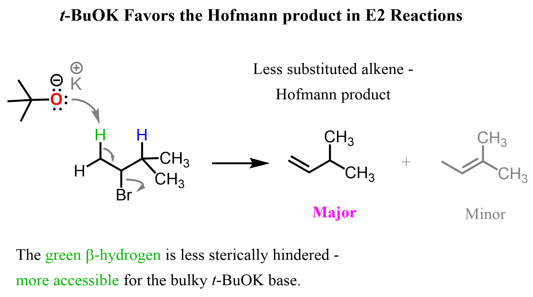 For example, the antiperiplanar alignment of the halogen and the β-hydrogen can be seen in the E2 elimination of 2-bromo-3-methylbutane with potassium tert-butoxide (t-BuOK).