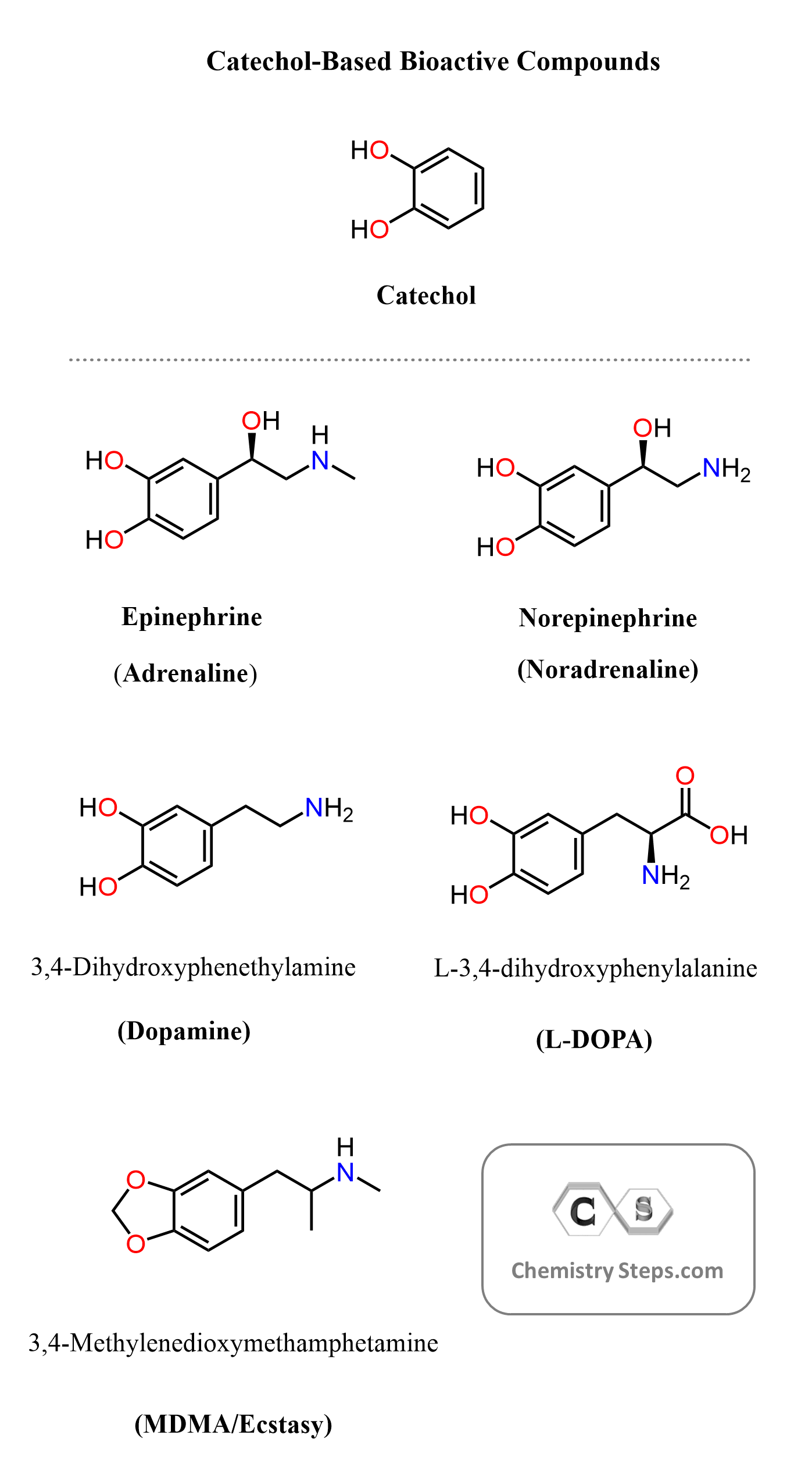 In this post, we will focus on the organic synthesis of several well-known compounds that are related to this structural motif, including adrenaline, dopamine, and ecstasy.