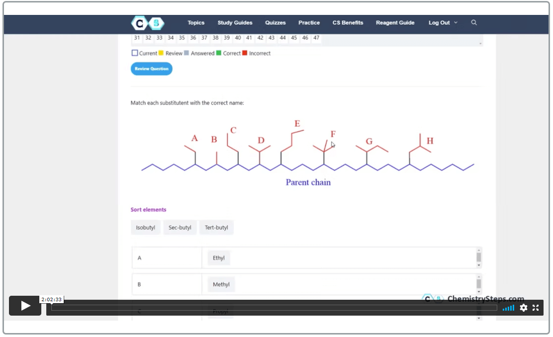 This is a 69-question, multiple-choice quiz covering the nomenclature of alkanes, alkyl halides, alkenes, alkynes, alcohols, aromatic compounds, aldehydes, ketones, and compounds with multiple functional groups.