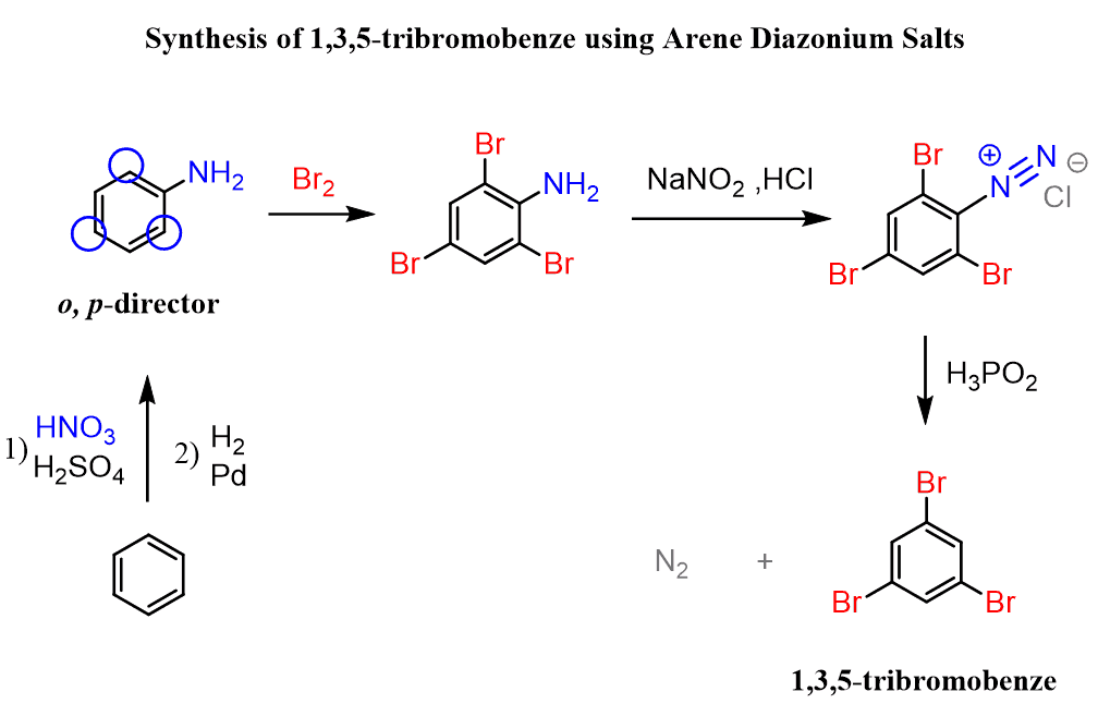 Aryl diazonium salts can be used as an alternative to the standard electrophilic aromatic substitution reactions for preparing aromatic compounds as well as for synthesizing compounds that cannot be prepared directly from benzene.