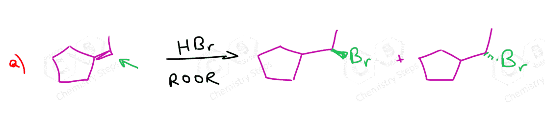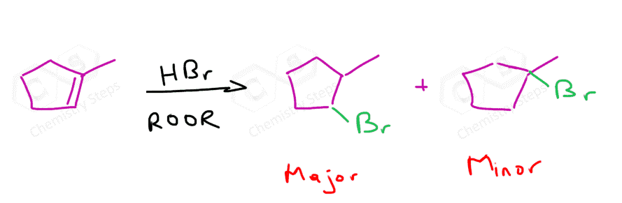 This is called anti-Markovnikov, free radical addition to an alkene, and is only efficient when the HBr is used. Let’s see how this happens.