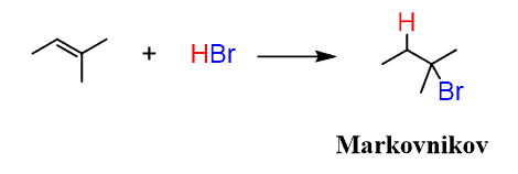 We learned earlier that according to Markovnikov’s rule, the addition of an HX acid to an alkene produces the more substituted alkyl halide as the major product: