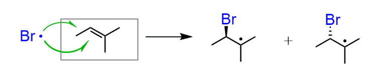 ”If both carbons f the double turn into a stereogenic center, then a mixture of enantiomers and diastereomers will be obtained:” can a radical carbon be stereogenic? doesn’t it have to have 4 different subs/attachments to it?
