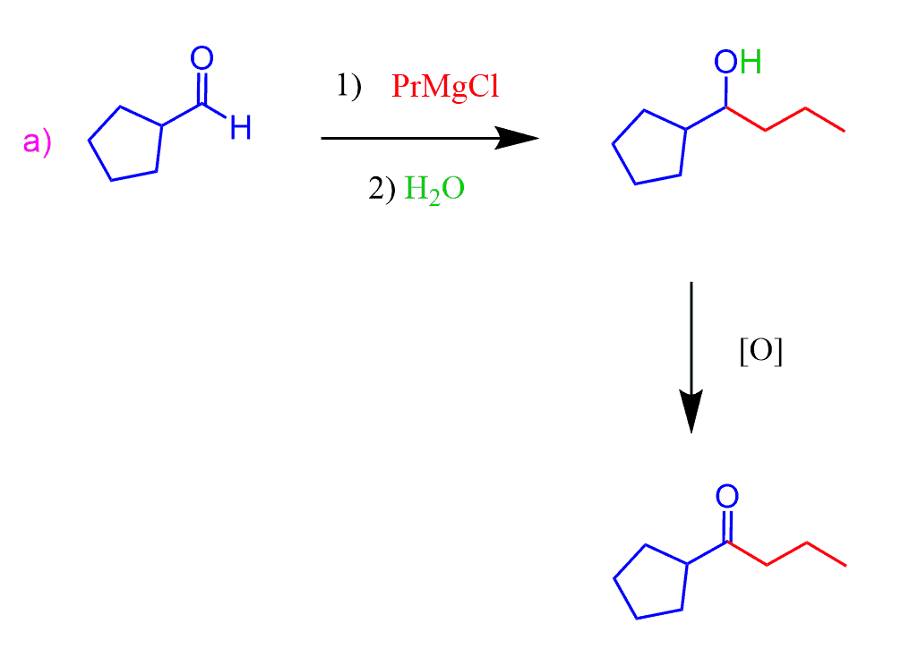 Therefore, in the following practice problems of Grignard reaction, anytime you see the [O] notation, interpret it as “any oxidizing agent” (strong or mild) such as Na2Cr2O7/H2SO4, KMnO4, PPC, DMP, Swern etc.