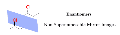 However, they don’t look exactly the same as the Cl atom points in different directions – wedge and dash. These molecules are not the same compound – they are non-superimposable mirror images which are known as enantiomers: