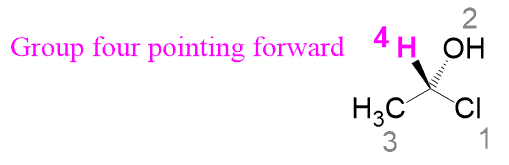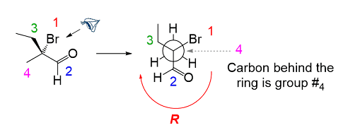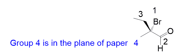 Alternatively, which is more time-consuming, you can draw the Newman projection of the molecule looking from the angle that places group 4 in the back (pointing away from the viewer):