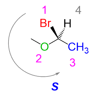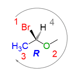 So, based on this, bromine gets priority one, the oxygen gets priority two, the methyl carbon is the third and the hydrogen is the lowest priority-four: