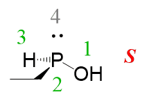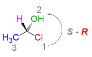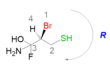 As an example, in the following molecule, the priorities go Cl > N > C > H, and the counterclockwise direction of the arrow indicates an S absolute configuration: