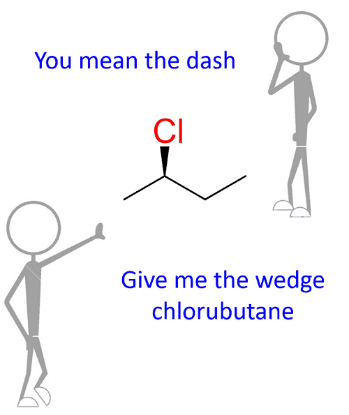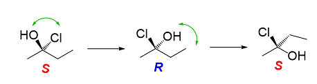 For example, let’s go back to the 2-chlorobutane starting with the wedge chlorine: