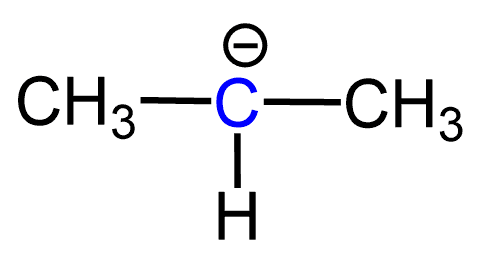 First, remember that carbon “likes” four bonds, and most of the time, carbon atoms are going to have four bonds and no formal charge. A negatively charged carbon atom should immediately tell you about a lone pair of electrons. In this case, since the carbon has only three bonds and a negative charge, it must also have a lone pair.