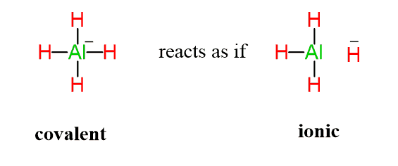 For example, the Al-H bond in LiAlH4 is so polar that it has a nearly ionic character, leaving the hydrogen as a hydride ion, which is very reactive both as a base and a nucleophile: