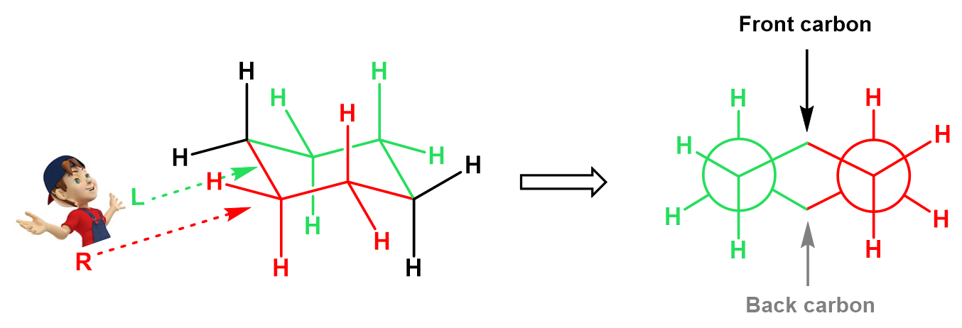 In the last part of this article, let’s also discuss the reverse process of what we have been doing. So, now, we are going to convert a Newman projection of cyclohexane to the corresponding chair conformation.