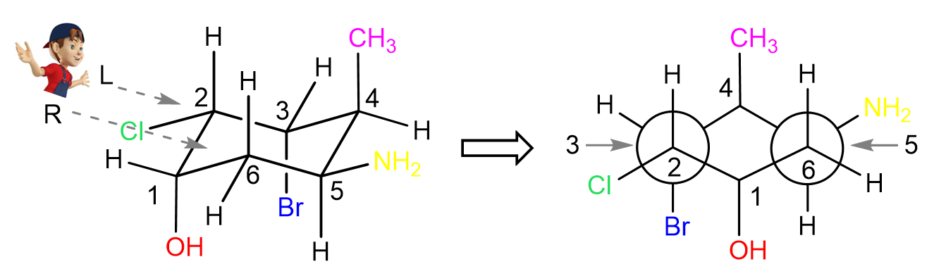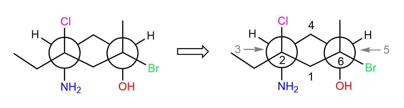 In all the examples above, there were no groups on the front and end carbons of the cyclohexane, so let’s also do one such example: