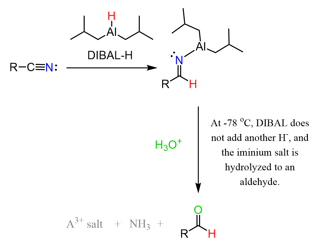 And this is the advantage of DIBAL because, after the first hydride addition, we can quench the reaction by aqueous workup, which hydrolyzes the imine to an aldehyde.