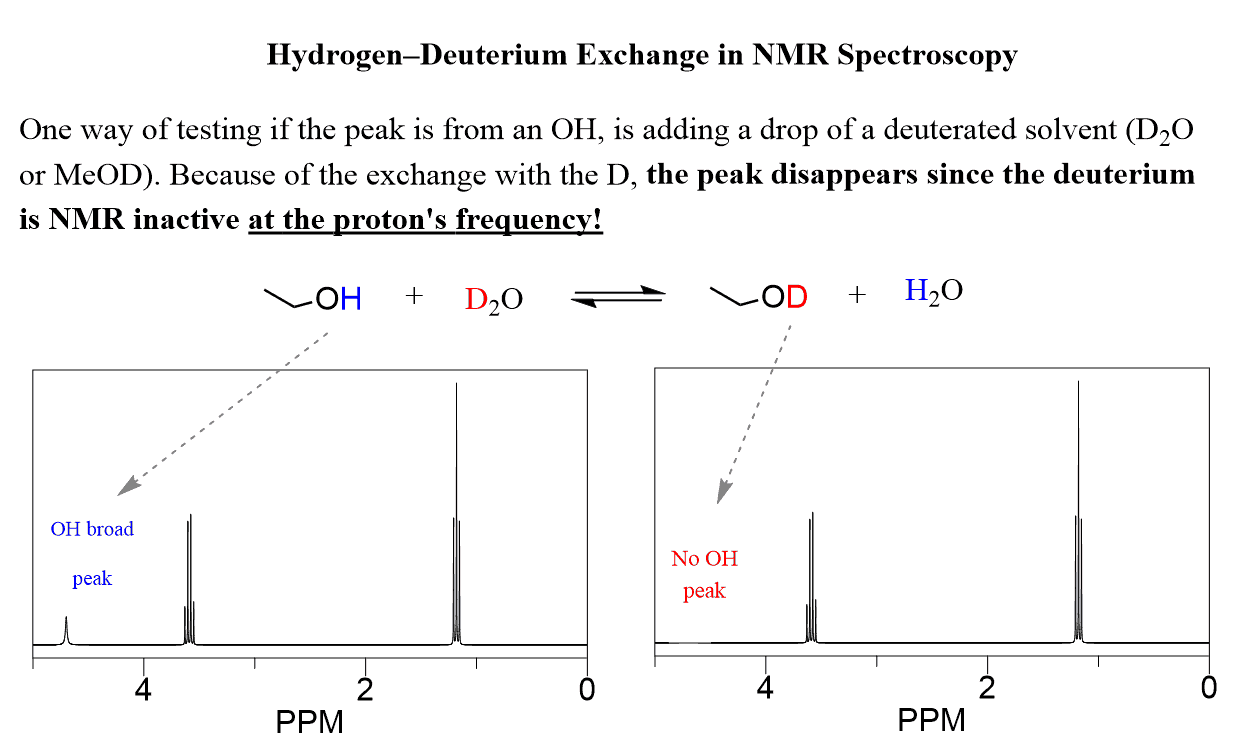And one more thing, which we will discuss in the signal splitting, is that the OH signal is not split by adjacent protons unless the sample is very well-dried.