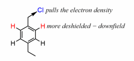 To summarize this, when an electron-donating group is present, the ortho and para protons are shifted upfield because of the increased electron-density in these positions.
