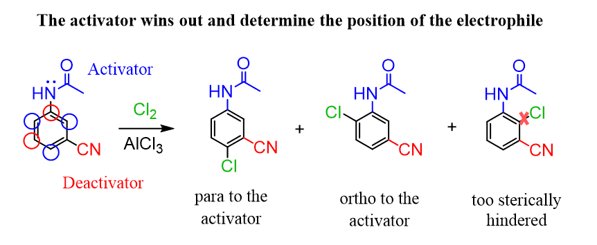 In the previous post, we talked about the orientation effects in EAS when there is more than one substituent on the benzene ring.