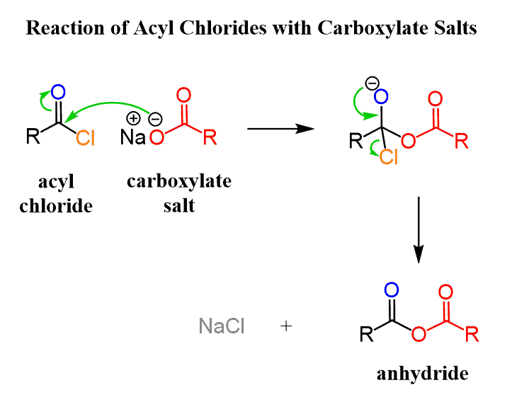 Carboxylate ion is a good nucleophile and reacts readily with acid chloride, forming carboxylic acid anhydrides: