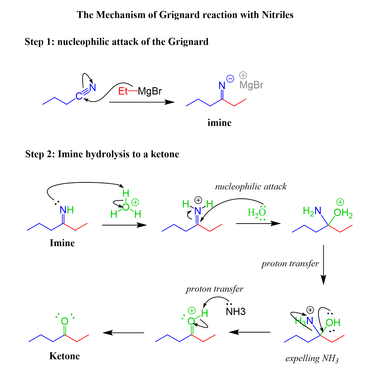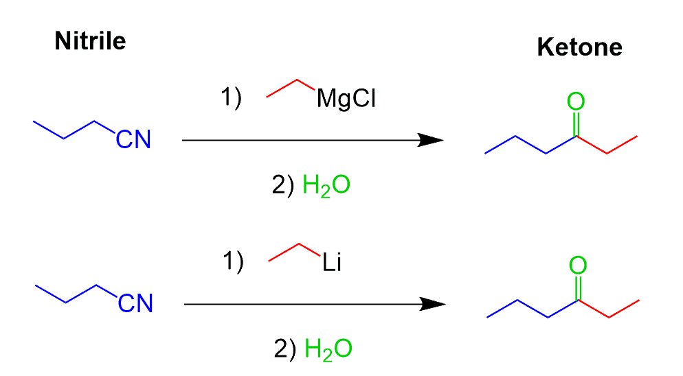 Nitriles are converted to ketones when reacted with Grignard and Organolithium reagents: