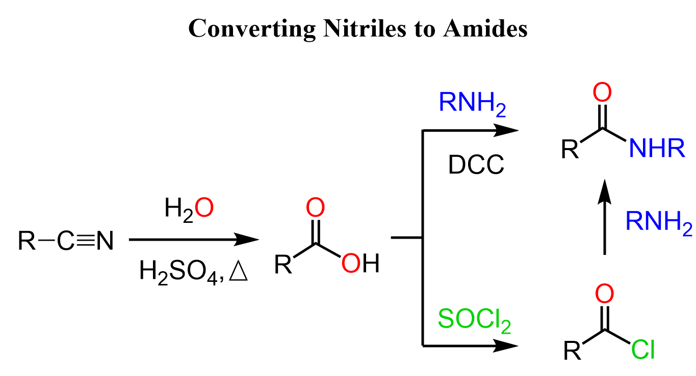 One question you may be wondering is whether we could stop the hydrolysis of the nitrile at the amide.