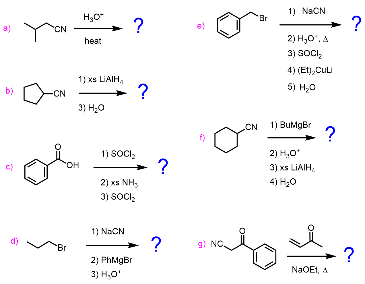 These are the main reactions of nitriles I wanted to mention. Let me know in the comments if there is anything important missing.