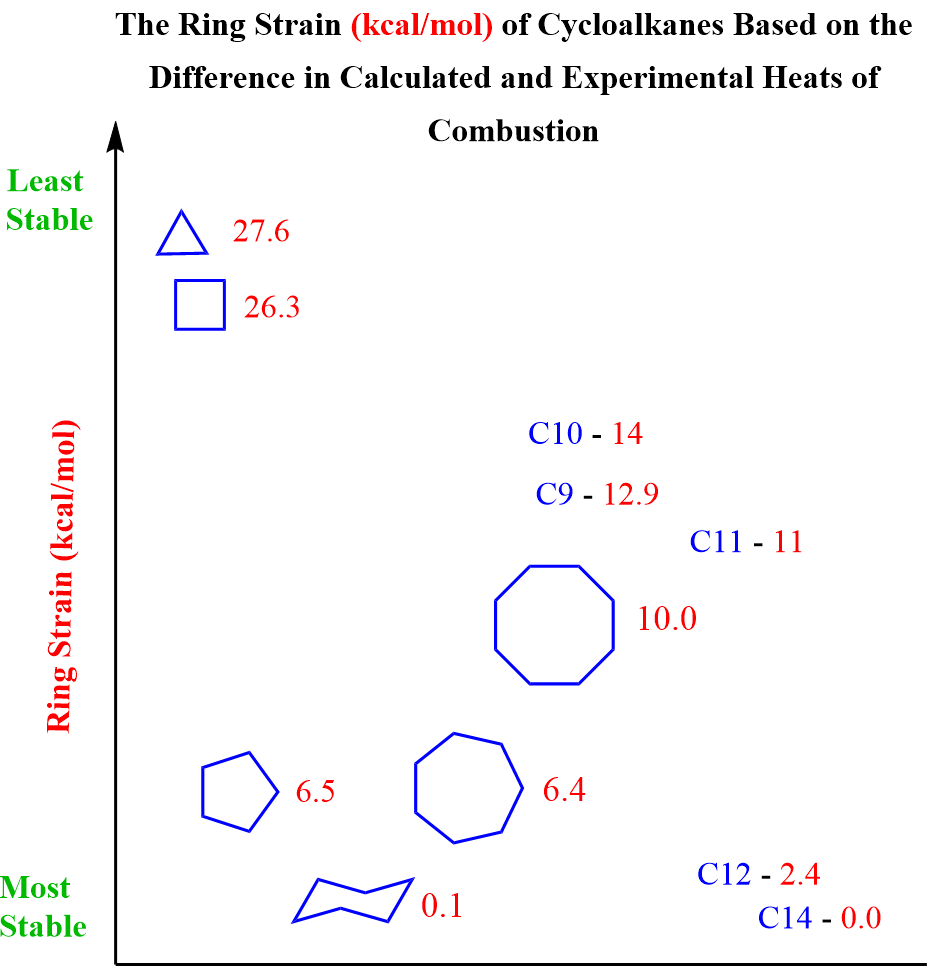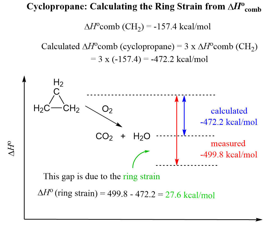 Ring strain = ΔHocomb (actual) – ΔHocomb (calculated)