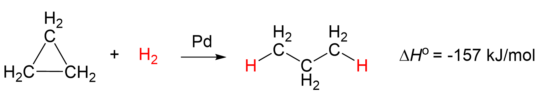 Ring strain (cyclopropane) = 499.8 – 472.2 = 27.6 kcal/mol (115.5 kJ/mol)
