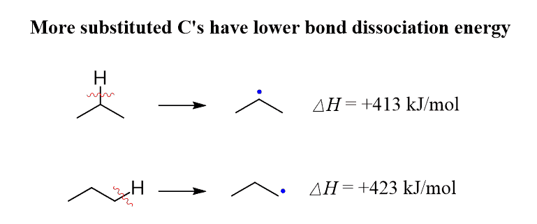 As a visual example, below are shown the values of DH ° for the primary and secondary C−H bonds of propane: