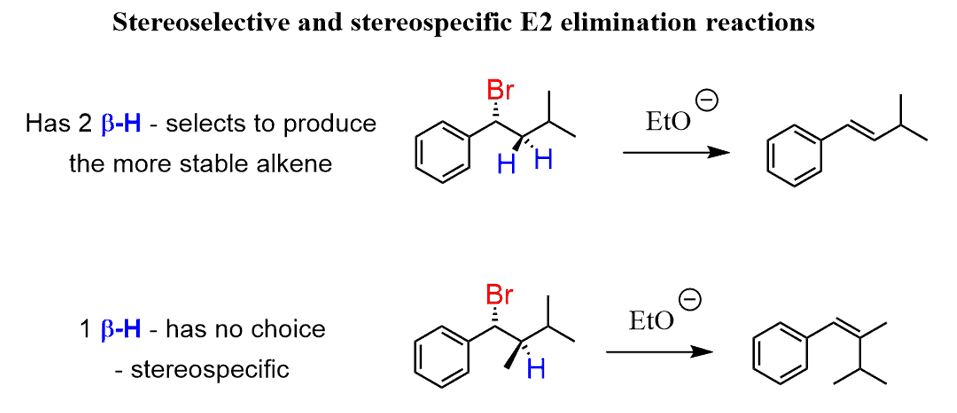 - If there are two β hydrogens, it is stereoselective.
