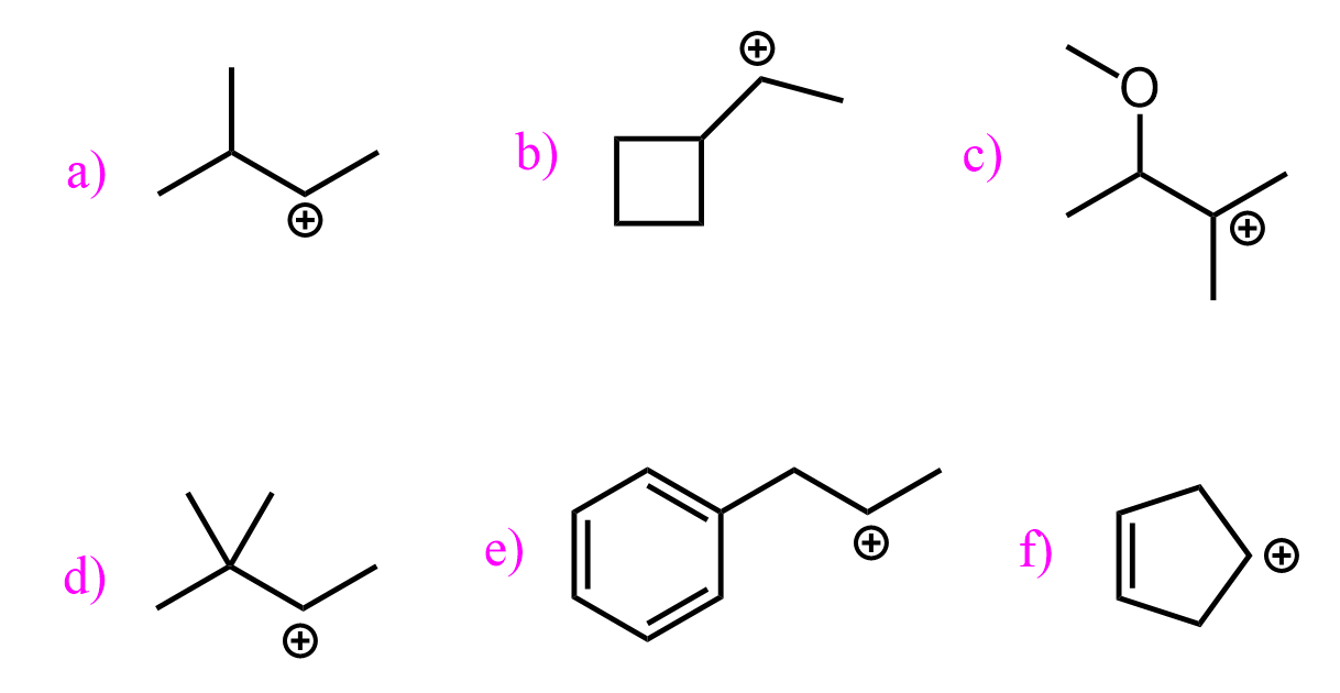 Remember, the main reason for rearrangement is the increased stability of the carbocation. Carbocations get more stable with the number of alkyl groups as they stabilize the positive charge on the carbon atom: