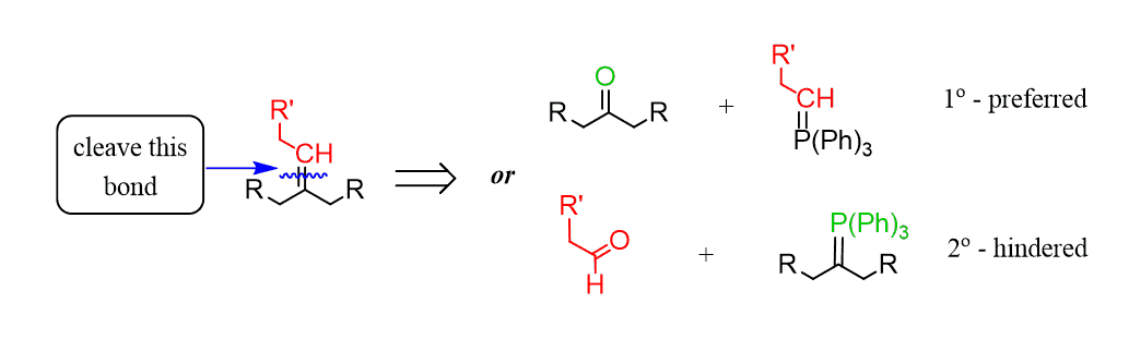 The arrow above shows the retrosynthetic direction – i.e., what compounds had reacted to prepare the alkene.
