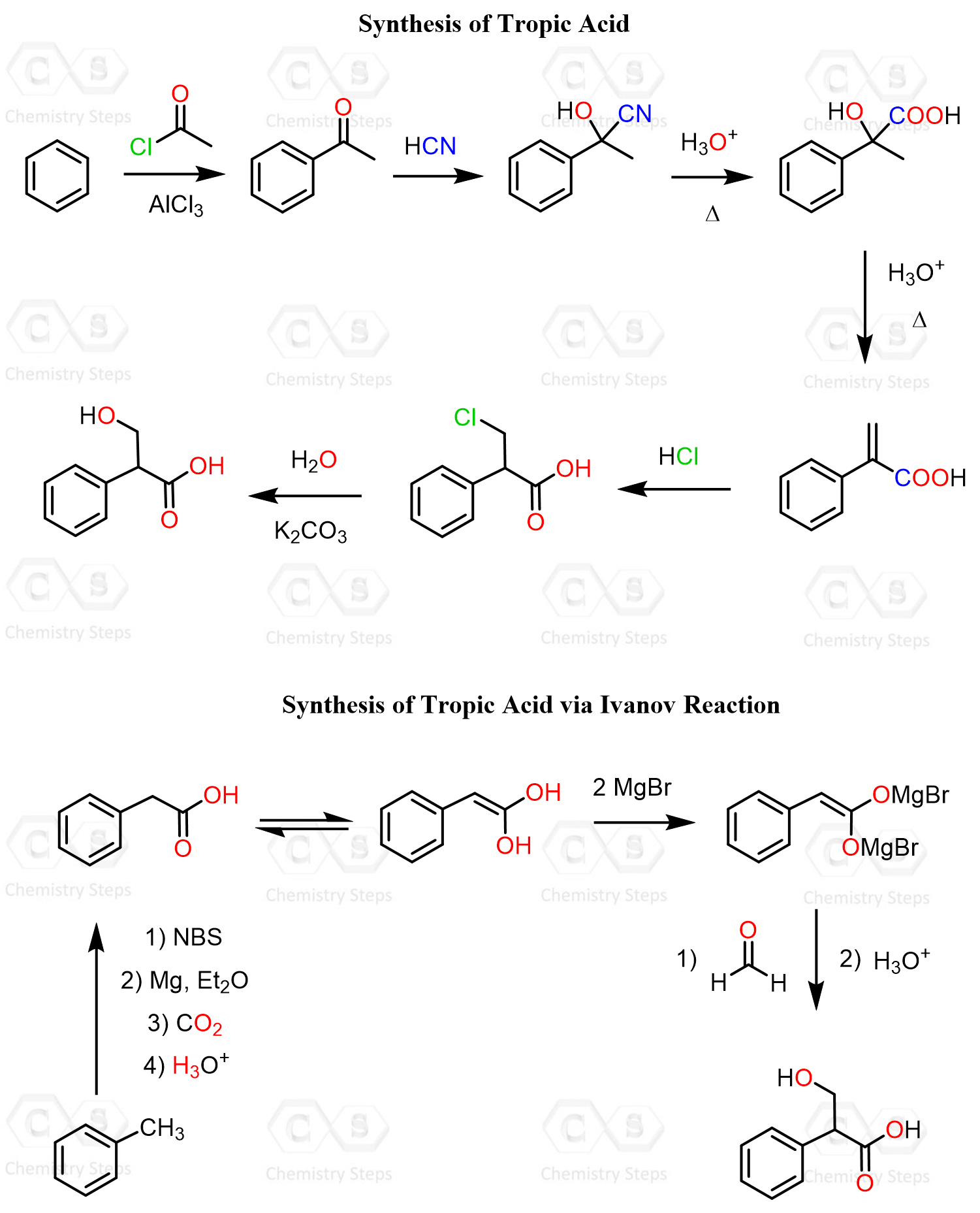 In the case of tropic acid, it can be prepared by the Ivanov reaction between phenylacetic acid and formaldehyde, which produces the corresponding β