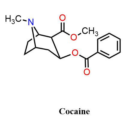 Cocaine is structurally related to the tropane alkaloids but has very different biological activity. It is a potent local anesthetic and powerful stimulant that works by inhibiting the reuptake of dopamine, norepinephrine, and serotonin. Although rarely, cocaine is still used medically in certain ENT (ear, nose, throat) procedures for its combined vasoconstrictive and anesthetic properties. However, its strong effects on the central nervous system and high potential for addiction have made it a controlled substance.